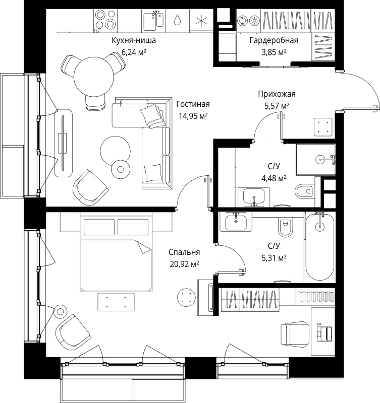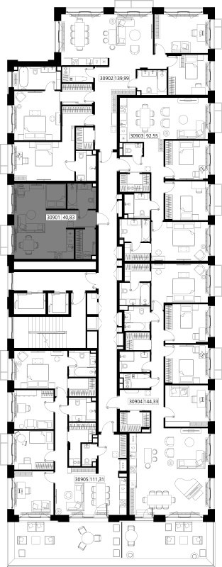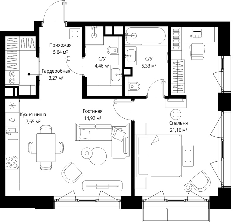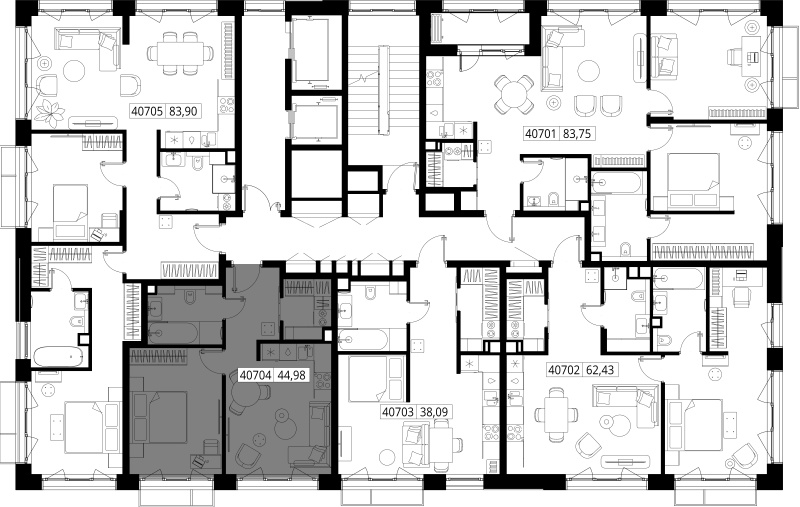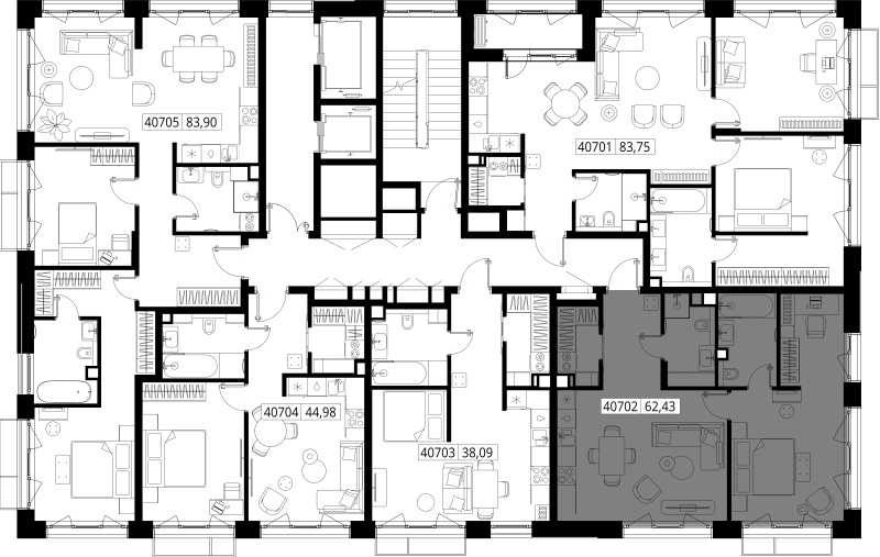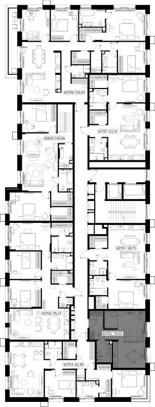 Дома спроектированы с максимально комфортной высотой — до 12 этажей. На каждом этаже расположено не более 6 квартир. Планировки рассчитаны на семью любого размера: от 38 до 170 м 2.