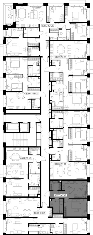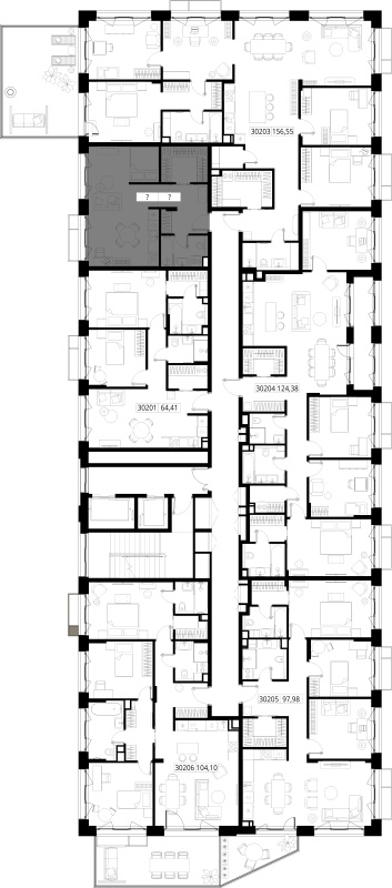 Пространство для семьи и уединения. Закрытая территория с собственным лесом создает атмосферу тишины и комфорта. Квартиры площадью от 80 до 215 квадратных метров с высотой потолков 3,3 — 6,4м. Максимальное количество квартир на этаже от 2-4.