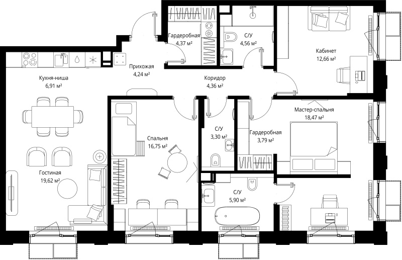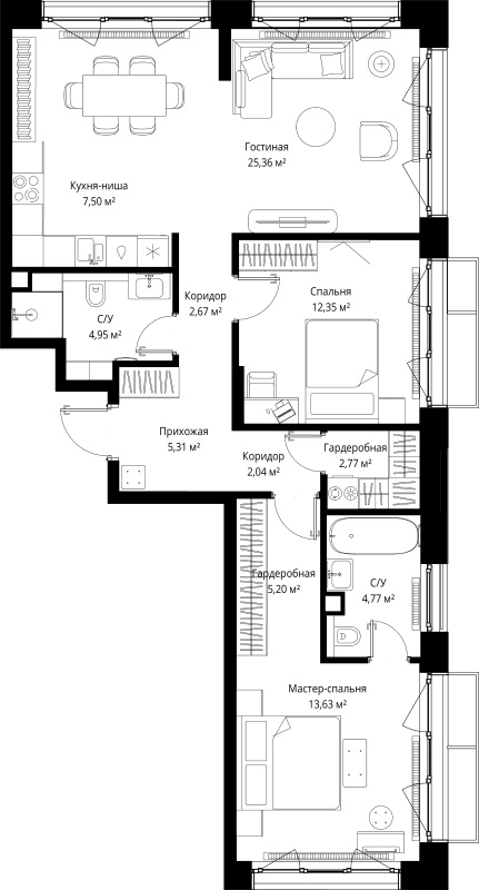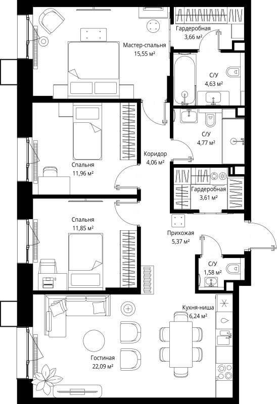 3-комнатная