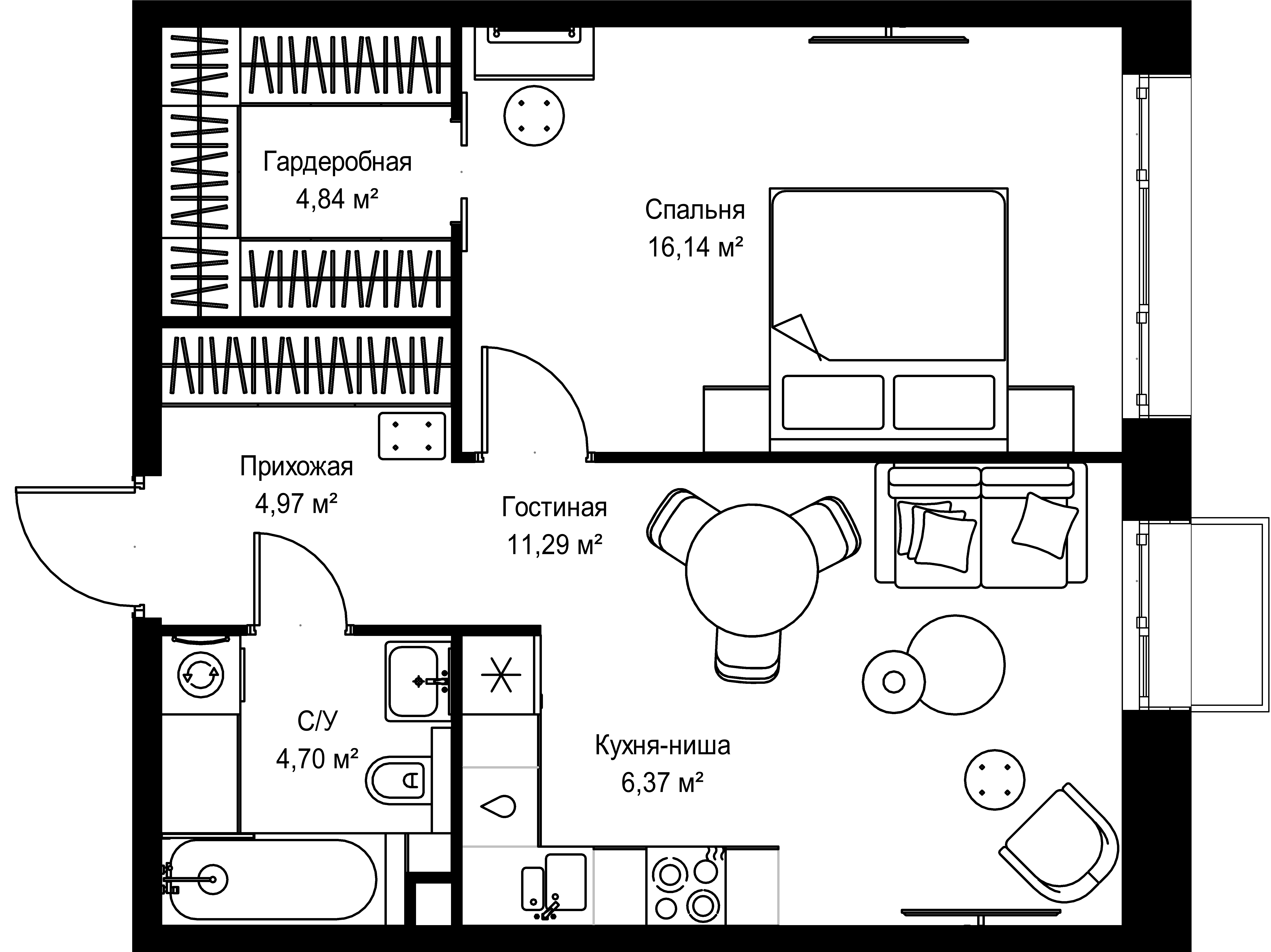 1-комнатная, 48.31 м²